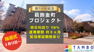 本日募集終了のREEZINにギリギリ滑り込みしてきました~。倍率4.9倍なので多分落ちる…。ということで、落選前提で次なる参戦予定案件はこちらです! TAMBO 葛飾金町プロジェクト 葛飾区の対象物件(1棟8戸)を取得後、改修工事・クリーニ...