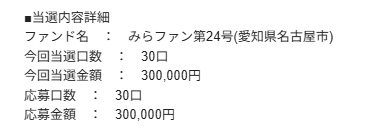 昨日が抽選締め切りだったファンドに滑り込み参戦(みらファン・らくたま)し、みらファンからは当選通知が来ました!
