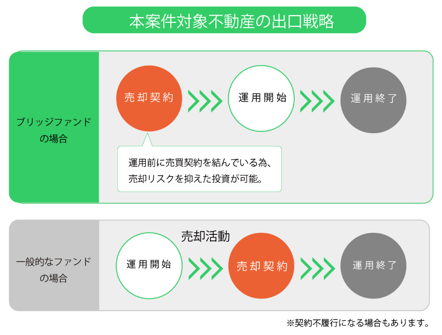 運用を始める前から全戸売買契約済みの物件で、決済までの期間に必要となる資金をクラファンで集めます。もちろん売買契約が解除になる可能性はゼロではありませんが、出口戦略が明瞭でリスクも抑えられた設計になっているので大好物です♡