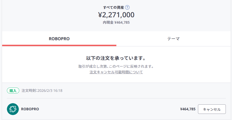 ROBO PROから臨時リバランスのお知らせメールが来たのが2026年2月3日の15時でした。
