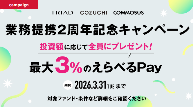 そしてこのファンド「TRIAD・COZUCHI・ COMMOSUS 業務提携2周年記念キャンペーン」の対象です。