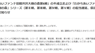 昨日からX(旧Twitter)でざわざわしていましたが、わかちあいファンドで遅延が発生したようです。 わかちあいファンドの償還遅延について 対象となったのは「わかちあいファンド旧軽井沢大樹の森」シリーズです。対象者あての遅延メールにSNSへ...